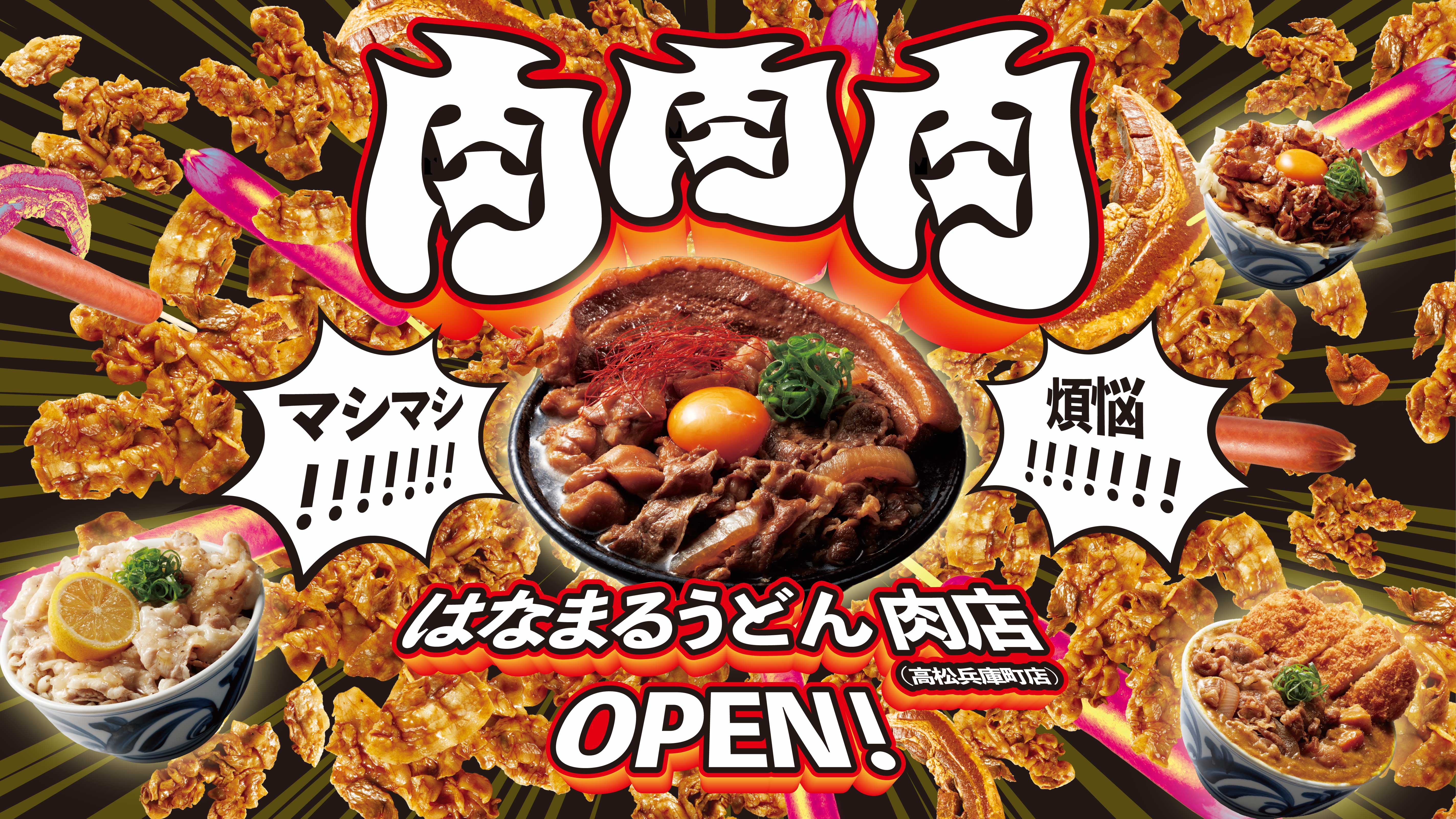 はなまるうどん肉店(高松兵庫町店)では、2025.10.30(木)より新メニューへの変更を実施させていただきます。